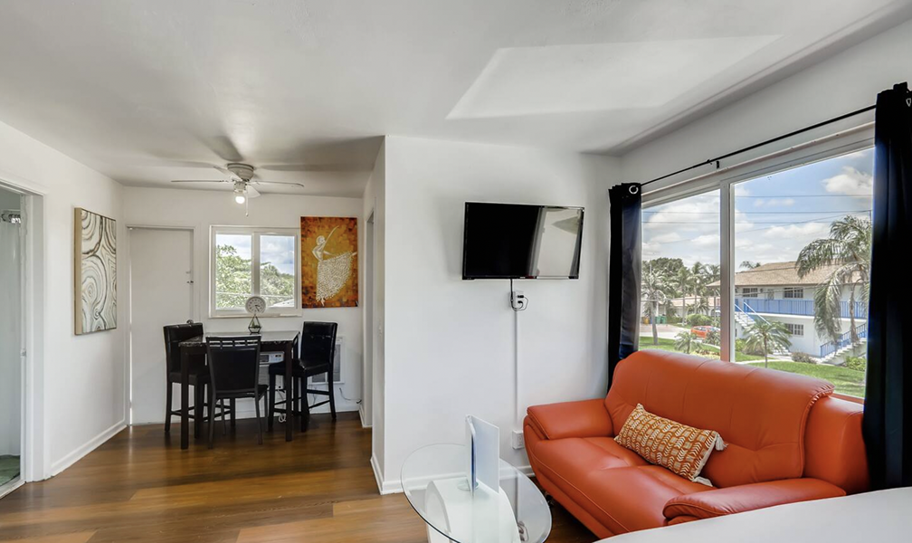 All of our efficiency rental units come complete with refrigerator, air-conditioner,microwave, coffee maker, smart T.V. free WIFI,, Jacuzzi access, and mere walking distantance from all of the isalnd entertainment.